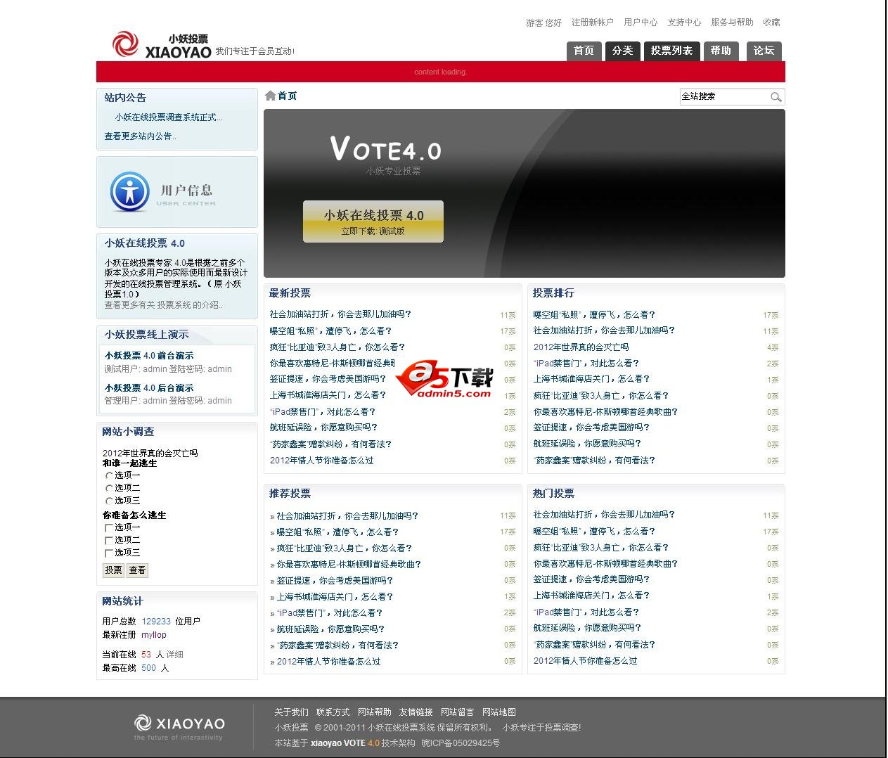 3、在首页增加了友情链接和公告,可以做成一个基本的投票网站