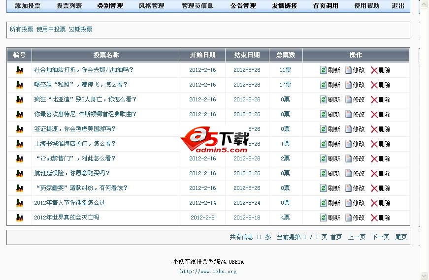 3、每个投票均为独立设置功能、风格、投票记录、评论管理