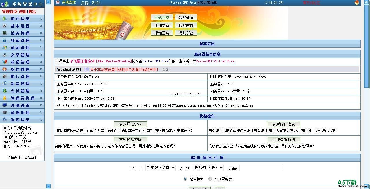 4、交互式会员系统,会员可在会员后台中发布会员短信、文章、教程及软件;