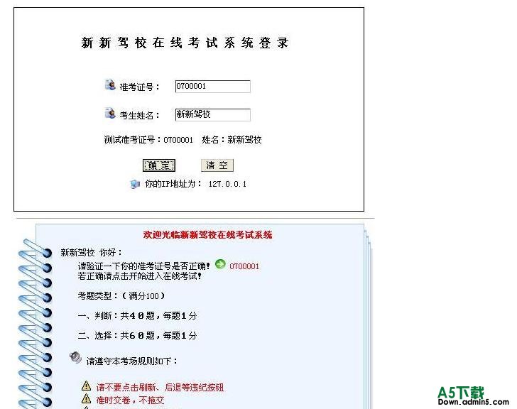 功能:试题管理 考试管理 分类管理 后台功能自主而灵活。带2000多道试题。