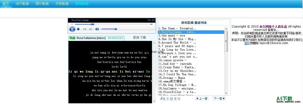 支持随机/顺序/单曲播放,支持快捷键:(Ctrl+←)转入上一首和(Ctrl+→)转入下一首;
