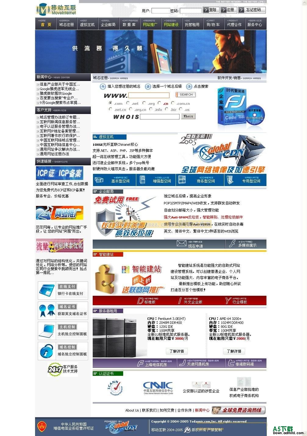 漂亮的IDC销售网站整站源码 后台进入地址:/admin.asp 帐号:admin 密码:admin