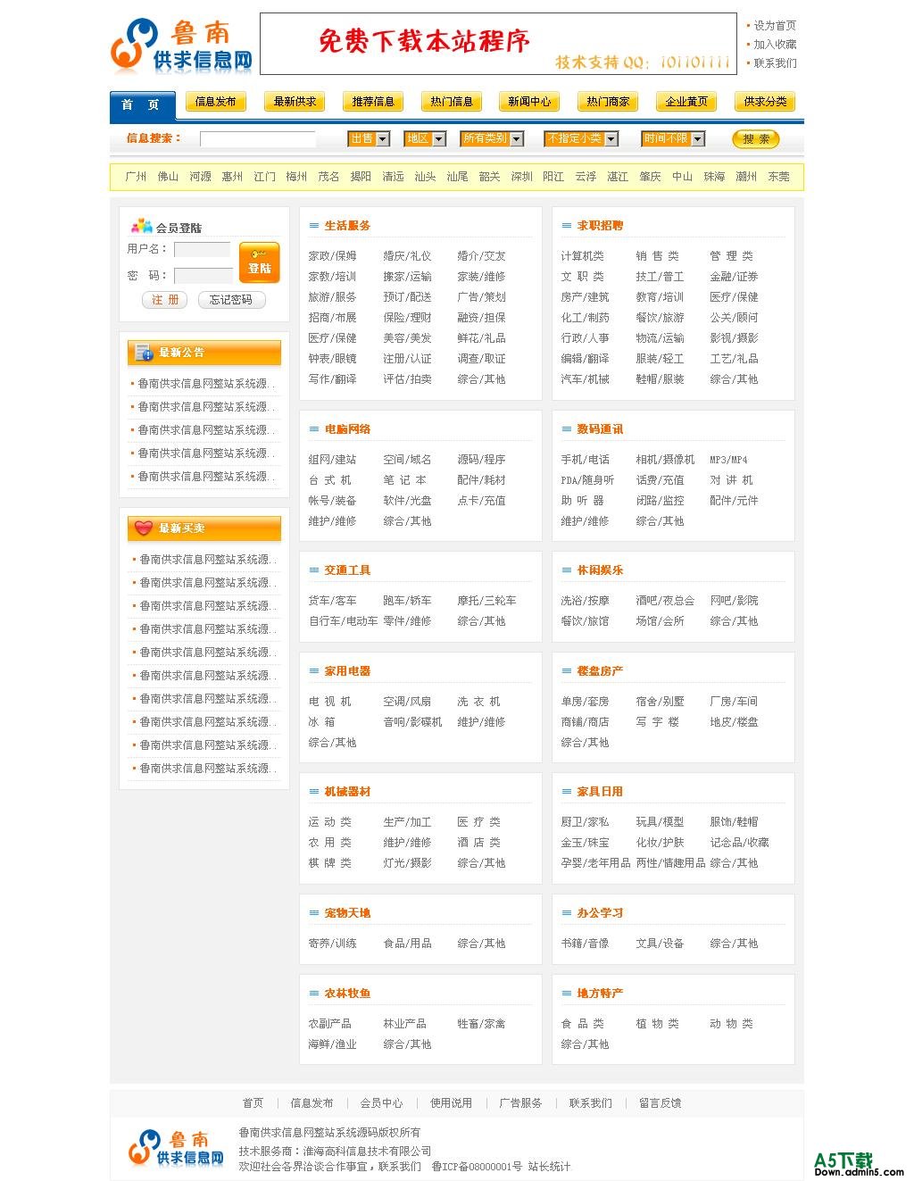 此程序经过长时间测试,修复所有已知的错误及漏洞,程序适合做全国乃至地方供求信息网,也可以只做某个行业的信息网;功能方面,此程序有着良好的权限分配制度,前台用户可以不用注册即可发送供求信息,信息审核也划分了几个不同类型,同时,为我们的站长提供了支付宝购买高级会员的渠道,以及全站广告设置功能.这么多好功能,市面上的程序基本卖千元以上.现在,您仅需下载即可拥有一个于本站一模一样的系统.马上开展您的创业梦吧!