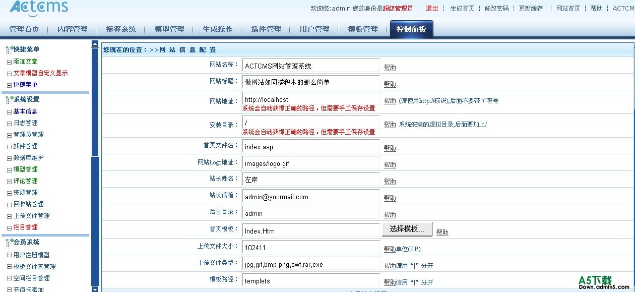 ACTCMS是一款具有强大的功能的基于ASP语言的开源内容管理软件,有UTF-8和GB2132两个编码版本,支持ACCESS和MSSQL两种数据库。ACTCMS是一款完全开源的程序,都毫无保留的完全开放源代码,用户不需额外安装其他DLL组件,其最大的特点是易用,