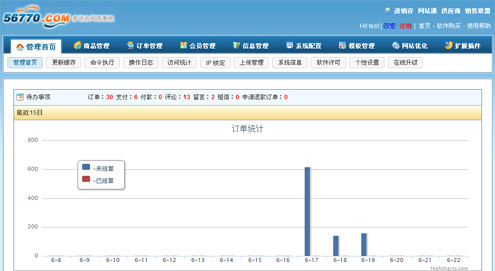 商家可以在后台查看每天的网上商店销售业绩,以便商家了解网上商家的经营状况,随时对网上商店的经营进行监管。