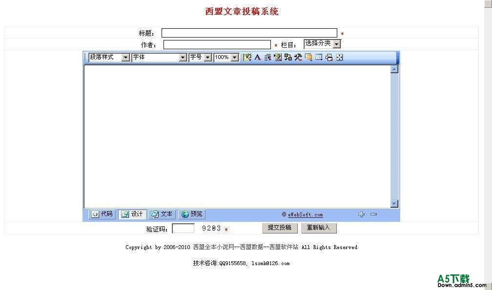强大的后台管理功能:可实现投稿内容的删除、修改、预览,投稿分类的删除、增加、修改,管理员的增加、删除、修改等.