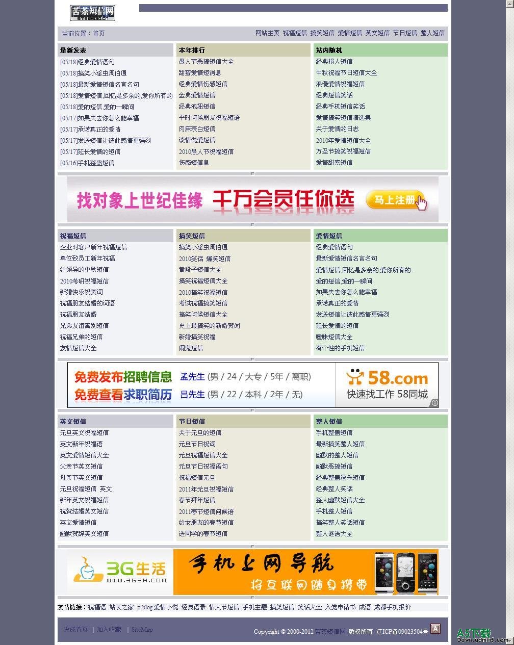 后台地址:localhost/admin_login.asp 用户:admin 密码:12345678 模板文件:THEMESblueideaTEMPLATE 主页模板:default.html 列表页模板:catalog.html 内容页模板:single.html 演示地址:http://www.sms12530.cn