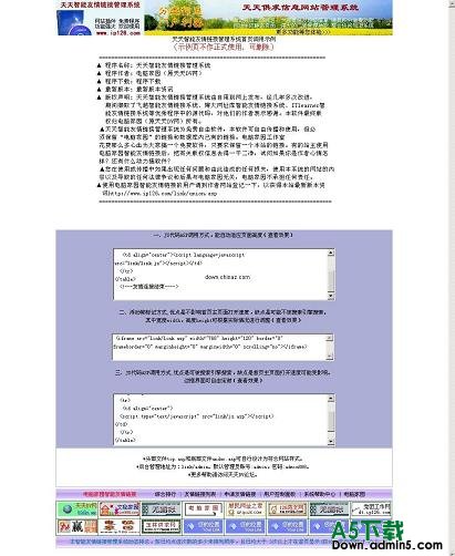 天天智能友情链接管理系统是由电脑家园(原天天DV网)ip126.com开发的、适用于各种网站作为友情链接管理插件。前台用户自助申请、修改、查询,系统自动审核(可设置手动),多重注册验证,防止注册机注册,自动排列,按申请链接的网站平均每天点进的次数排序显示链接,点击越多,排名越前。后台具有强大的管理功能。网站管理者后台设置网站基本信息,可对链接审核、修改、固顶、点入豁免、催放代码、代码错误通知,查看统计记录等,可后台设置注册字符限制、域名限制、IP限制、多重注册验证、LOGO选项、缓存名称等,设立8套风格模板,后台可设置默认模板,前台用户可自由选择风格,适合不同风格网站使用,设立邮件列表功能,发布最新资讯......