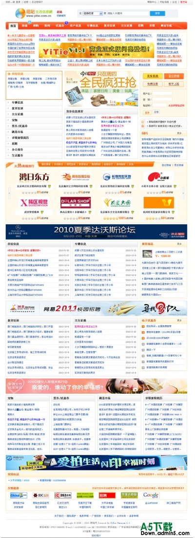 易贴生活信息网(YiTie Version 1.0)系统是定位于中高端市场的分类信息管理系统,能够以最低的成本、最少的人力投入在最短的时间内架设一个功能齐全、性能优异、规模庞大的信息网站平台。