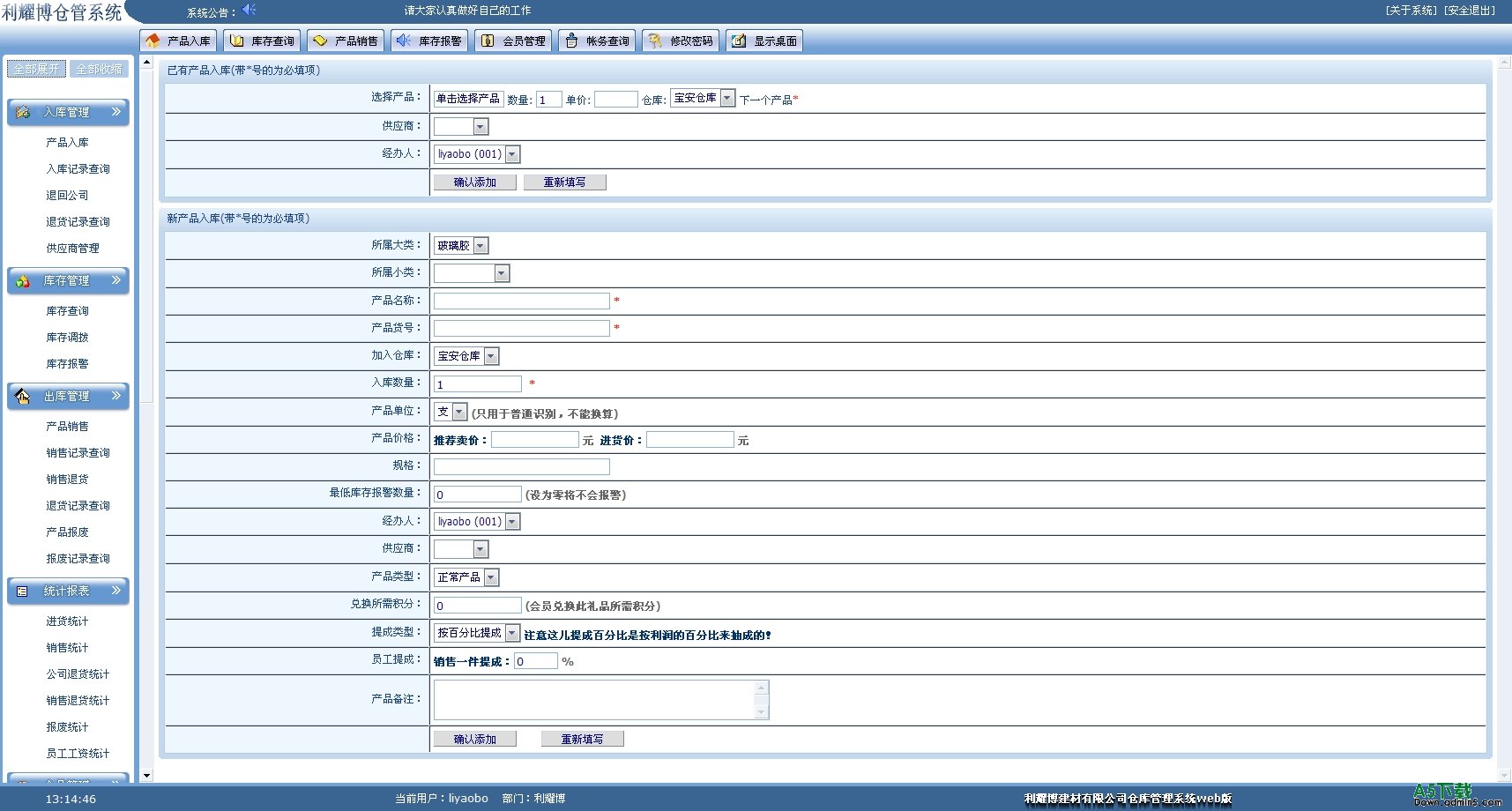 实用的web仓库管理系统,只要一个asp空间,即可向网站一样管理自己的仓库.