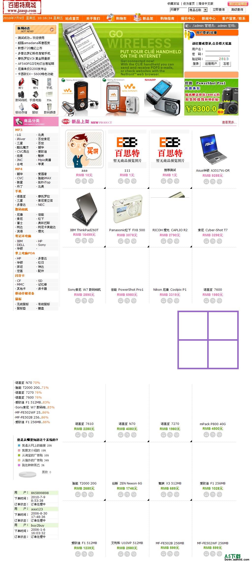 基本管理栏目帮助 商城新品上架 商品订单管理 商品评论管理 缺货商品管理 商城用户管理 管理员设置