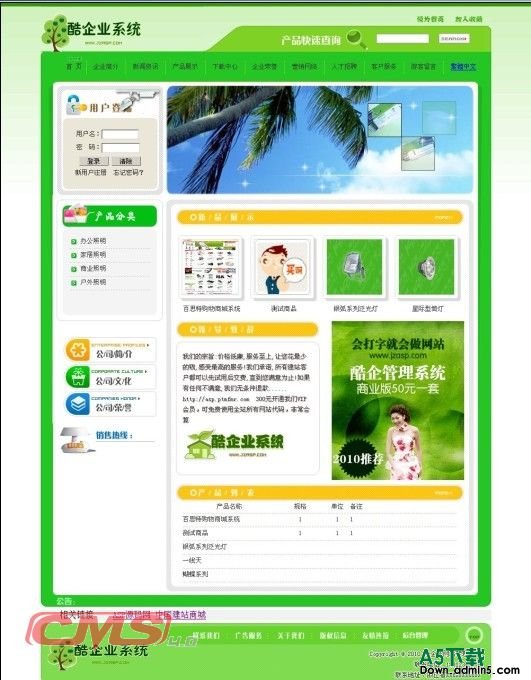 4. 下载资源:发布供网站浏览者和客户下载的资料等,如使用手册、销售合同、软件等,无限级分类。