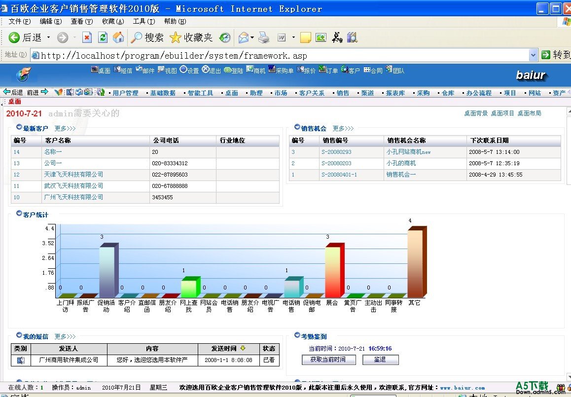 e.商机管理:全精力面对潜在客户中的销售机会进行产品或服务销售,软件自动报警功能与各类相关处理工具,从而提高销售的成功率,并对售失败原因进行分析;