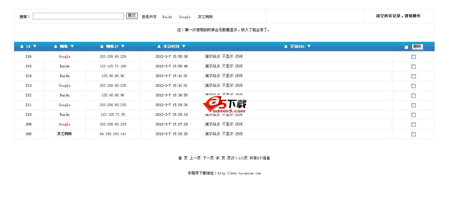 这个软件可以查看蜘蛛访问记录,根据这些记录可以看到蜘蛛什么时候来访问过你的站,抓取了什么内容,并可进行数据的查询和统计等。