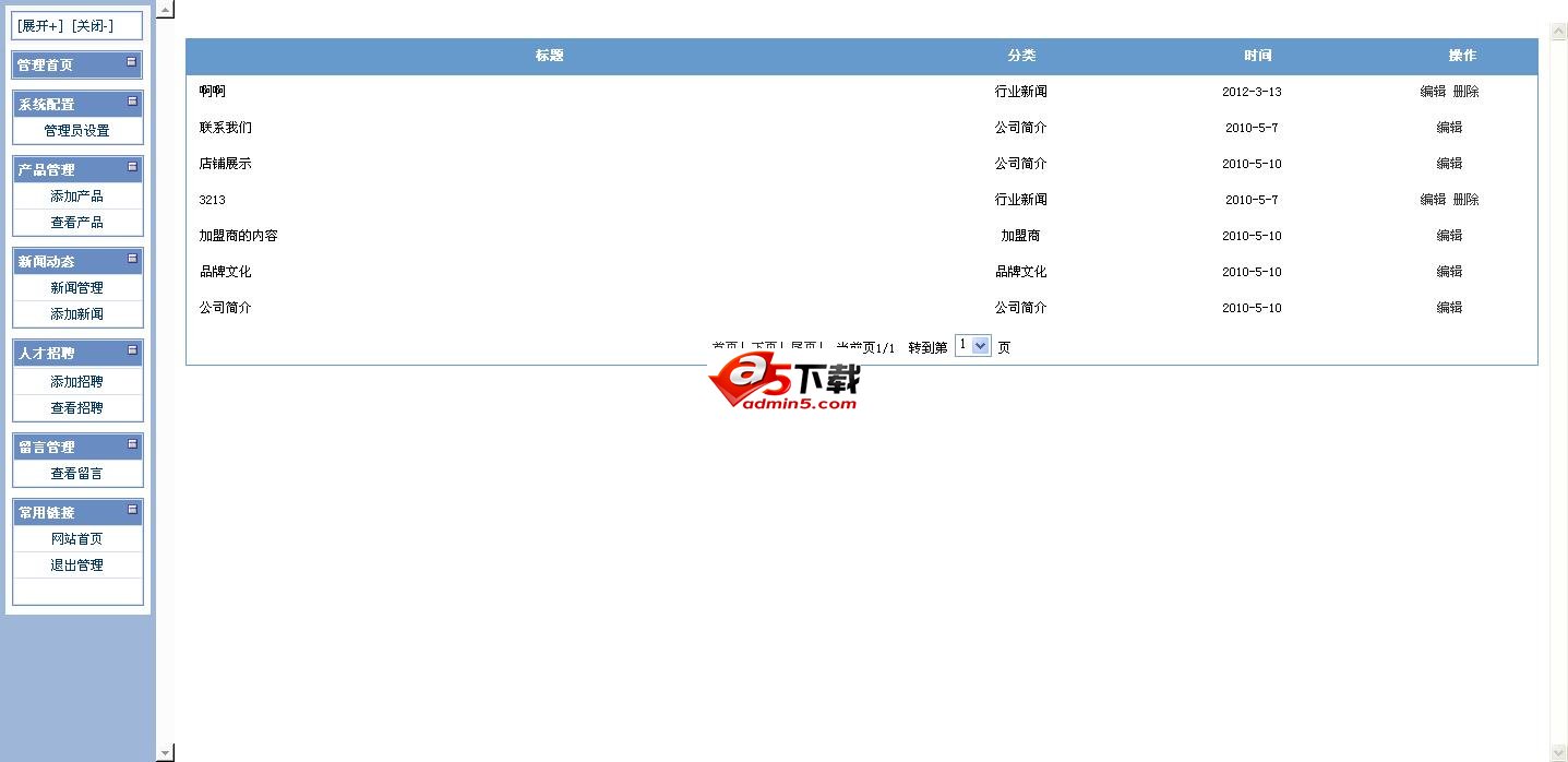 2、后台管理面板登录:http://域名/houtaimanage/ 帐号/密码 admin