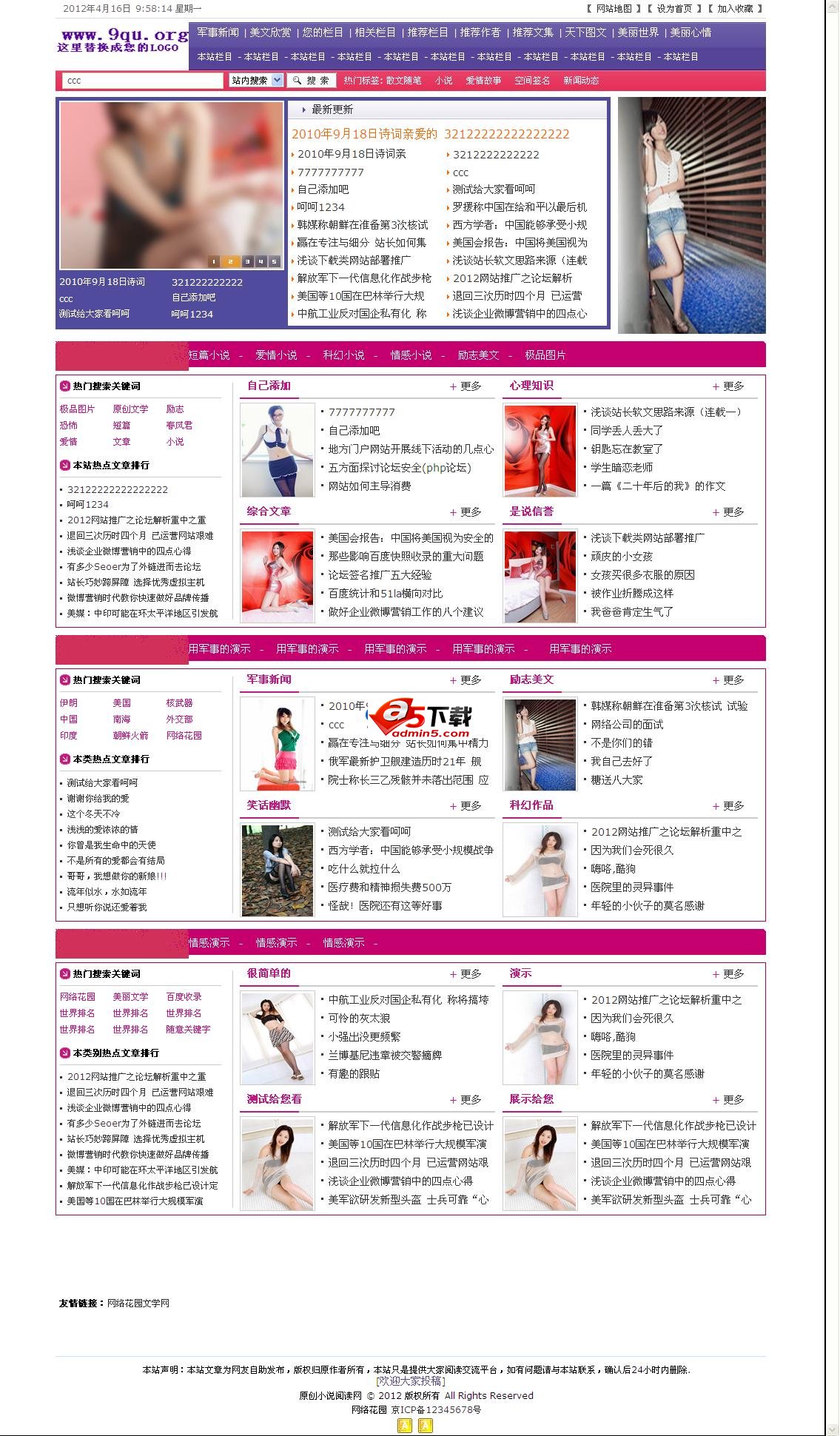 本程序主要是以老Y,乐度,网钛源码基础上整合而成,画面美观。本程序发布只为了大家学习研究之用。