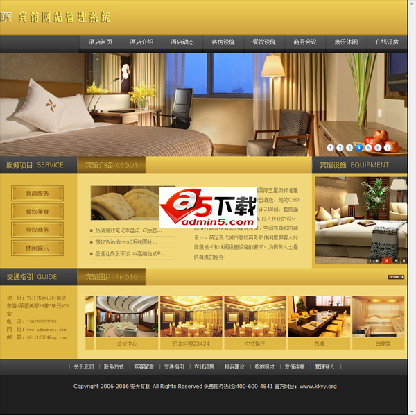 本程序用于宾馆网站行业,网站无任何功能限制,无阉割,界面大气