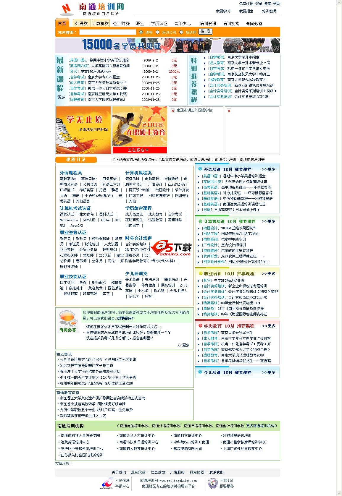 南通培训网站源码,一个套完善的地方培训网站,采用ASP+ACCESS程序架构。