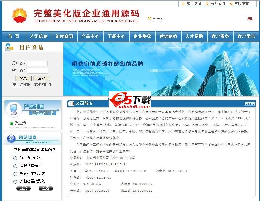 经典蓝色通用型企业网站,经测试完整无错,适合各类企业建站使用。 网站包括会员中心模块、企业信息模块、产品管理模块、企业招聘模块和客户留言模块。 网站采用ASP+ACCESS架构,方便修改,是企业建站的不二选择。 后台目录:admin 管理员和密码都是:admin