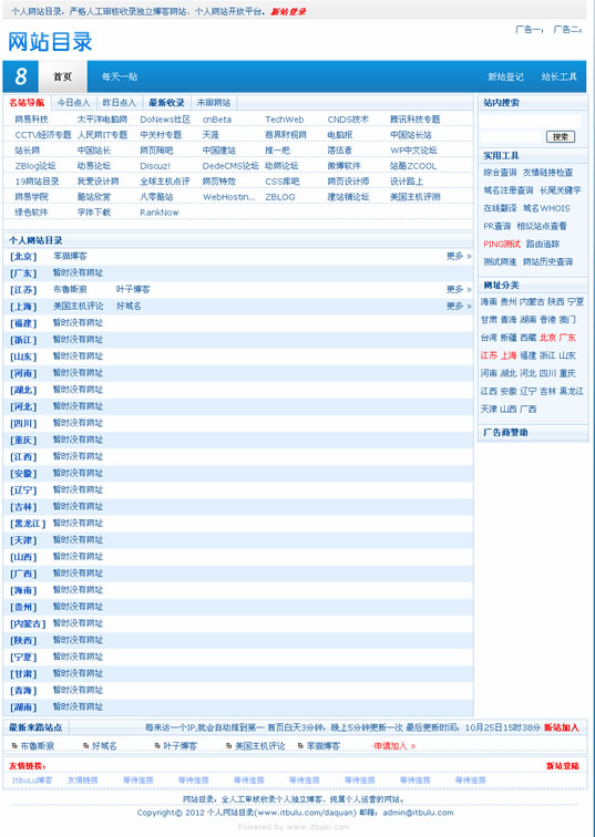 3、增加了辅助站长工具,借助CHINAZ的查询工具接口直接点击就可以查询到该目录站点的参数。