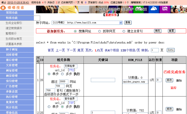 本搜索引擎是采用倒排结构算法,ASP_VB脚本,Access数据库的小型垂直(行业)搜索引擎。