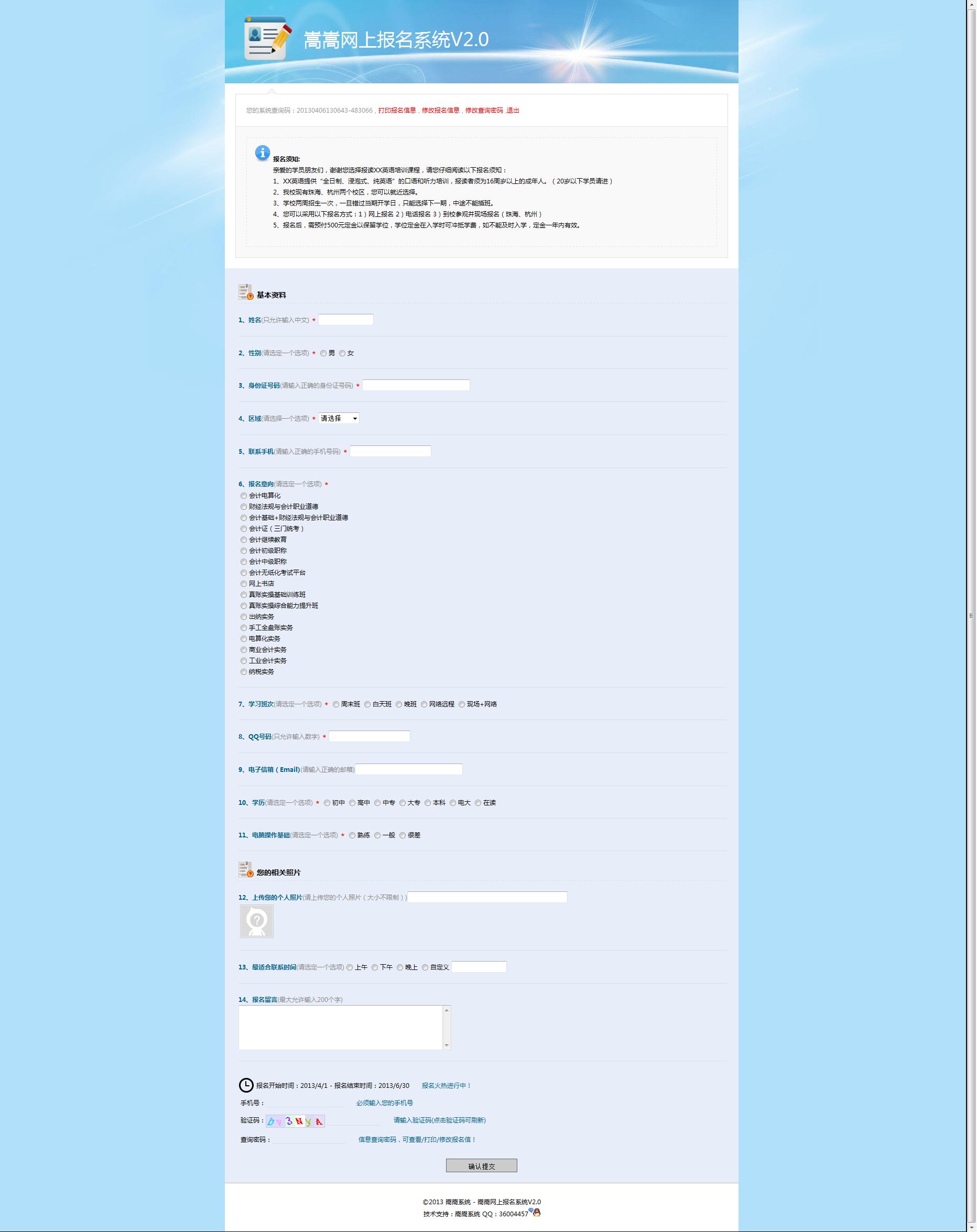 8.支持多达9种报名表输入框。支持报名者上传相片