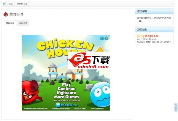 愤怒的小鸟 Discuz! X2.5 插件 插件兼容 X1.5、X2、X2.5 完美兼容。 此插件没有修改任何系统文件,完全外部实现。可放心使用!