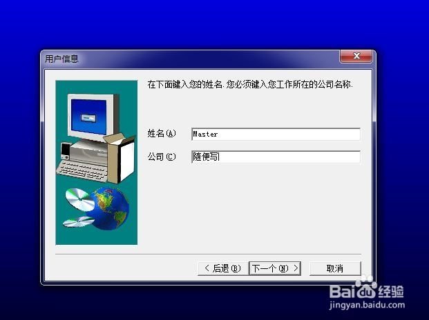 接着出现输入个人信息的对话框,随意写。接着下一步,如图