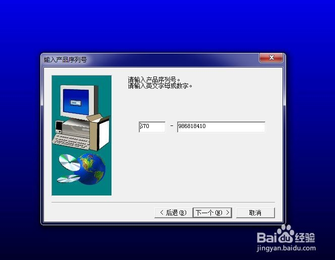 接着是,输入序列号,安装图中号码输入即可。下一步,如图