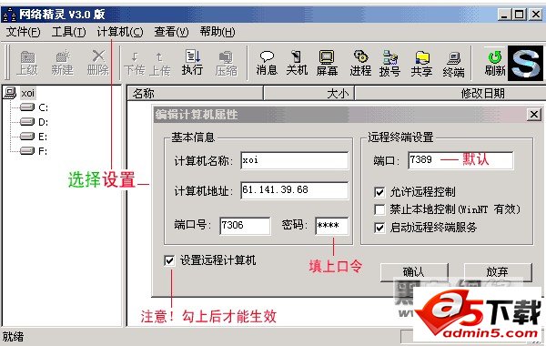 “网络精灵”远程监控系统是一套通过网络协议,对网络上的机器进行自动监控、管理的软件,采用先进的C/S结构,通过TCP/IP通讯协议,对用户的电脑进行自动跟踪和监督,除具有文件管理功能外,还可以对使用者的操作进行监督和管理,并提供有效的远程控制功能,具有良好的可靠性,安全性和可扩充性。“网络精灵”分为管理器和控制器两部分,管理器安装于管理员的计算机上,实现对客户计算机的管理。控制器安装于客户计算机上,对来自管理器的要求作出反应,实现系统的各项功能