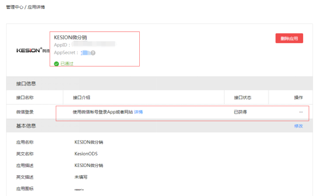 等审核通过后,一样登录微信开放平台https://open.weixin.qq.com,点开网站应用,可以看到之前申请的应用状态已显示“已通过”;