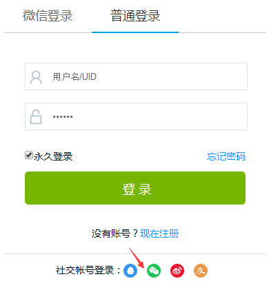 前台点微信登录图标,扫描二维码即可快捷登录;