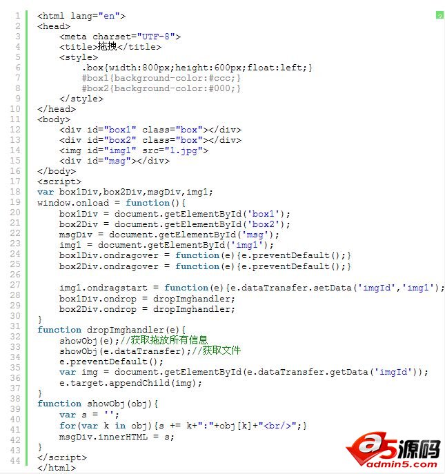 该功能是可以将图片拖拉到左右两个div中的方法,我觉得没啥用,可以当作哈啤