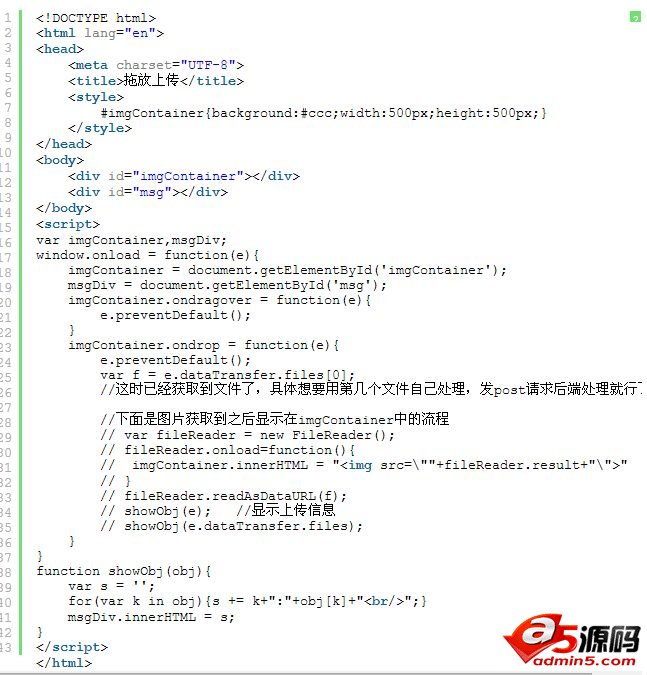 下面是拖拉上传代码,后端PHP获取到$_FILES之后就可以搞起来了