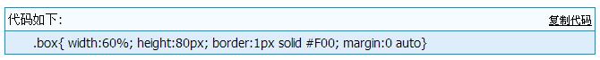 box{ width:60%; height:80px; border:1px solid #F00; margin:0 auto}