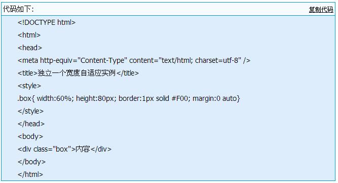 说明:这里设置宽度为60%,为了便于观察到效果,所以给予设置高度和红色边框,因为考虑到独立设置一个DIV盒子一般居中的,所以设置margin:0 auto完整的HTML源代码(包括HTML和CSS):