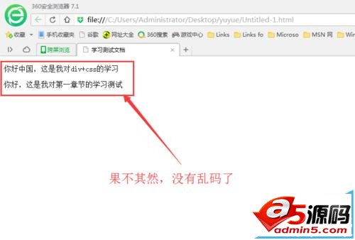 2、然后我用360浏览器预览我的代码效果,很遗憾,真的出现乱码了