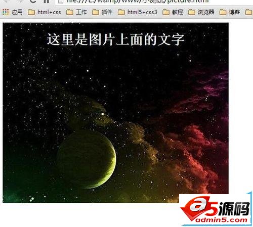 4、在代码中定义一个div,要写上宽度和高度,最好是与图片宽高相等。然后将图片作为div的背景插入。