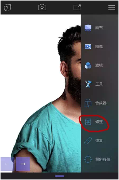 Enlight的粉碎教程分享: 1、准备好一张人物侧面照,点开主菜单工具选择修整功能;
