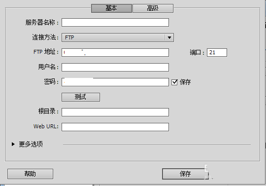 Ftp地址,用户名,密码键入申请域名时保存的信息,注意不要更改Ftp地址的端口
