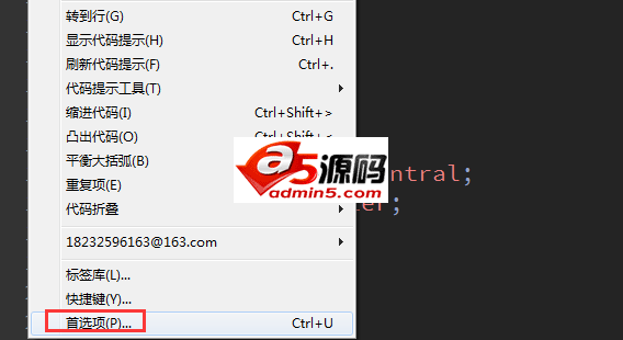 3、点击之后,有下拉菜单出现,我们选中最下面的“首选项”选项,进入到首选项的设置中。