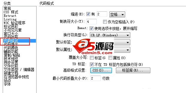 5、然后我们选择“高级格式设置”中的css按钮,设置css代码的格式