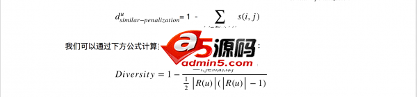 那也就是说,我们在推荐系数时,必要考虑一个因子来控制多样性问题,如果当系统想推荐文章i时,我们就要对已经在文章列表R(u)内任意文章 j ,计算相似度,引入