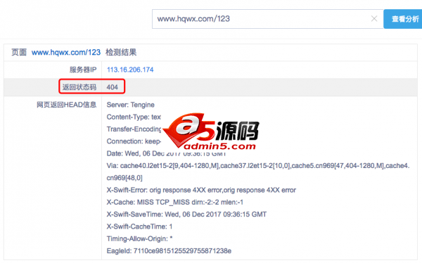 首先是否需要设置404页面,需要先确定哪一类页面返回的是404状态码,这点我们可以通过chinaz的http状态码查询工具进行查询,如下图: