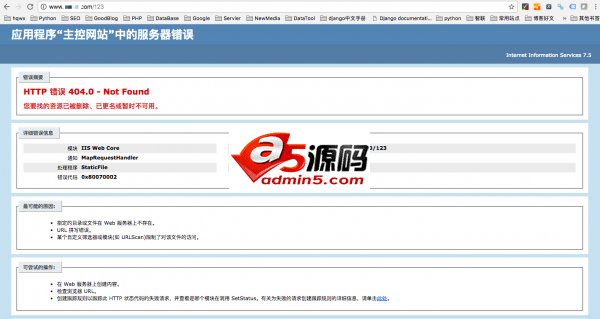 那对应返回的页面,就是我们需要进行设置的。当我们没有对该页面进行设置的时候,服务器正常返回的页面如下图(之一):