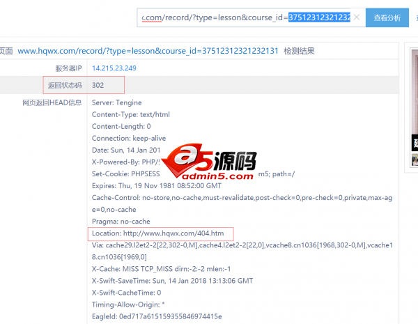 访问正常的URL地址:http://www.hqwx.com/record/?type=lesson&course_id=375。我们把后面的375改成37512312321232131。然后进行访问发现如下结果: