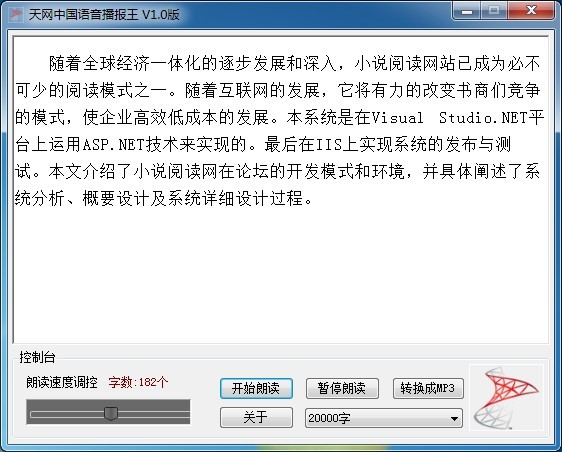 《天网中国语音播报王》是一款把文字转成语音的朗读软件,是专为您提供的电脑播音员。它采用国际领先的语音合成技术,播音效果可与专业播音员相媲美,是一款学习和语音宣传的完美软件。