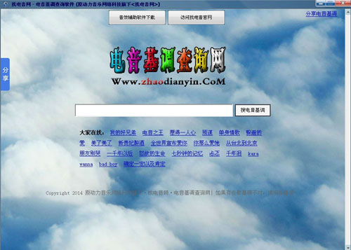 找电音网电音基调查询软件有几十万首歌曲基调数据,可供您方便查询,让你省去大量查询基调的时间,是一款演唱电音歌曲,必不可少的辅助软件!