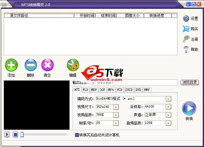 MTS转换精灵 拥有强大的视频转换功能,支持几乎所有的视频格式,如 RM、RMVB、VOB、DAT、VCD、MPG、SVCD、ASF、MOV、QT、MPEG、WMV、MP4、3GP、DivX、XviD、AVI、FLV、MKV、MTS、M2TS、F4V、MOD、TOD、DV、TS等转换为多媒体播放机上所支持的 AVI、FLV、F4V、MKV、3GP、3G2、MP4、VCD、MPG、SVCD、DVD、WMV、ASF、SWF 等视频格式。