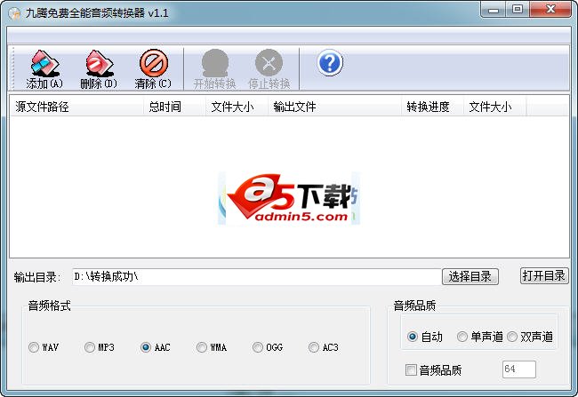 九腾免费全能音频格式转换器支持RM、MP2、 MP3、MPL 、AAC、WMA、 OGG、 WAV等主流音频格式之间任意转换,支持批量转换,可同时处理多个文件。